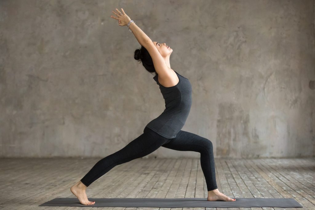Virabhadrasana, ou posture du Guerrier, est excellente pour débuter une session de yoga. En effet elle ouvre la cage thoracique, les épaules, le ventre et le bassin. En agissant ainsi sur la partie haute du corps, elle permet d’amplifier la respiration, tout en décrispant une zone corporelle souvent « recroquevillée » et tendue. Ainsi elle contribue à détendre le corps et donc, à déstresser.