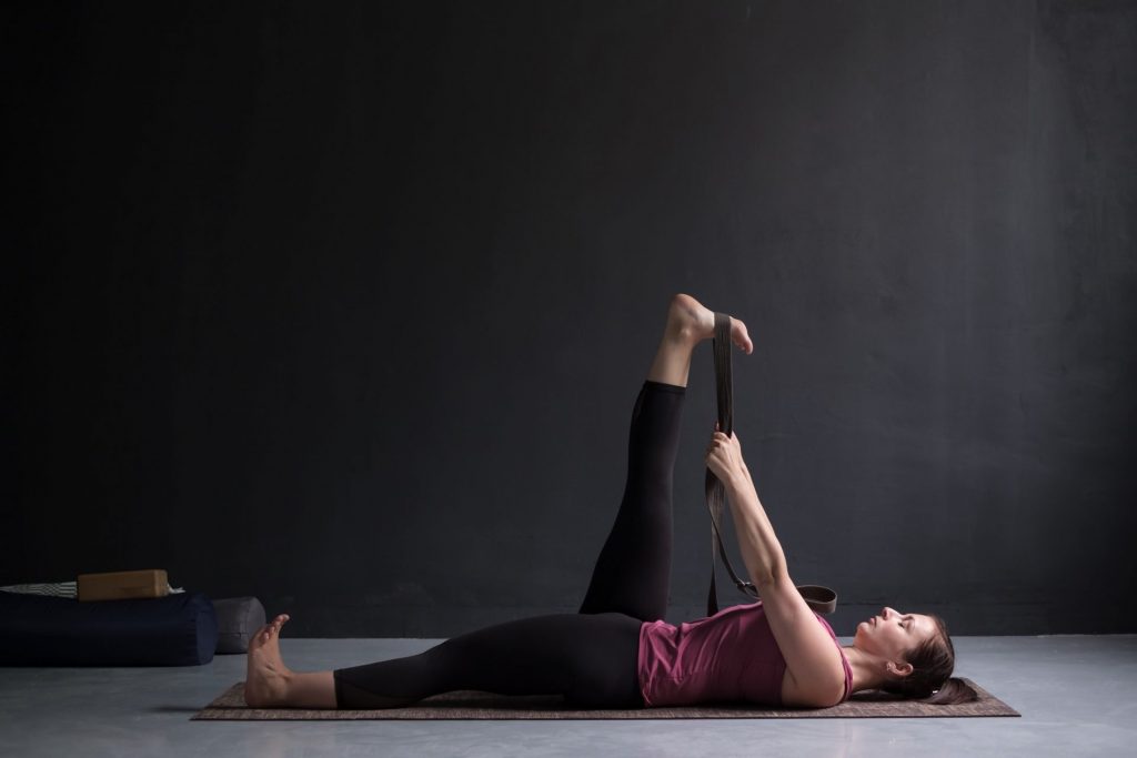 Supta Padangusthasana, ou posture de l’étirement de jambe tendue, est également un exercice de yoga à envisager pour déstresser. En effet il détend toute la partie inférieure du corps : ischio-jambiers, fléchisseurs de la hanche, aines. Elle agit sur le système nerveux et les ganglions lymphatiques, en rééquilibrant les flux vitaux et énergétiques. À noter que vous aurez besoin d’une sangle (une ceinture de peignoir peut tout à fait convenir) pour réaliser la posture.